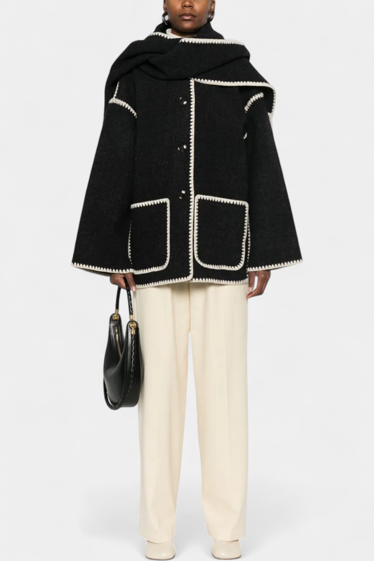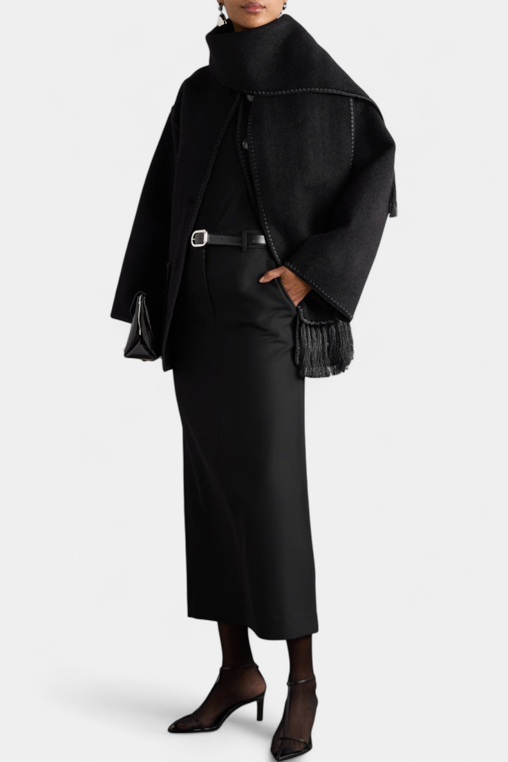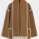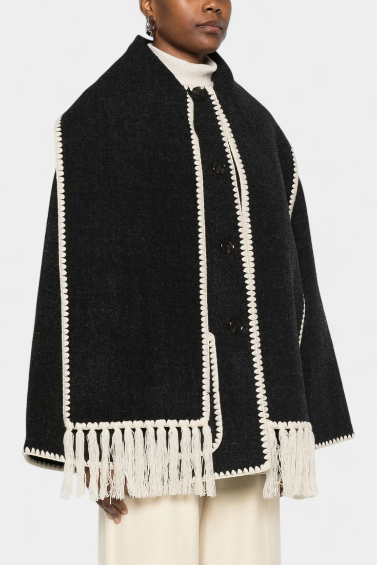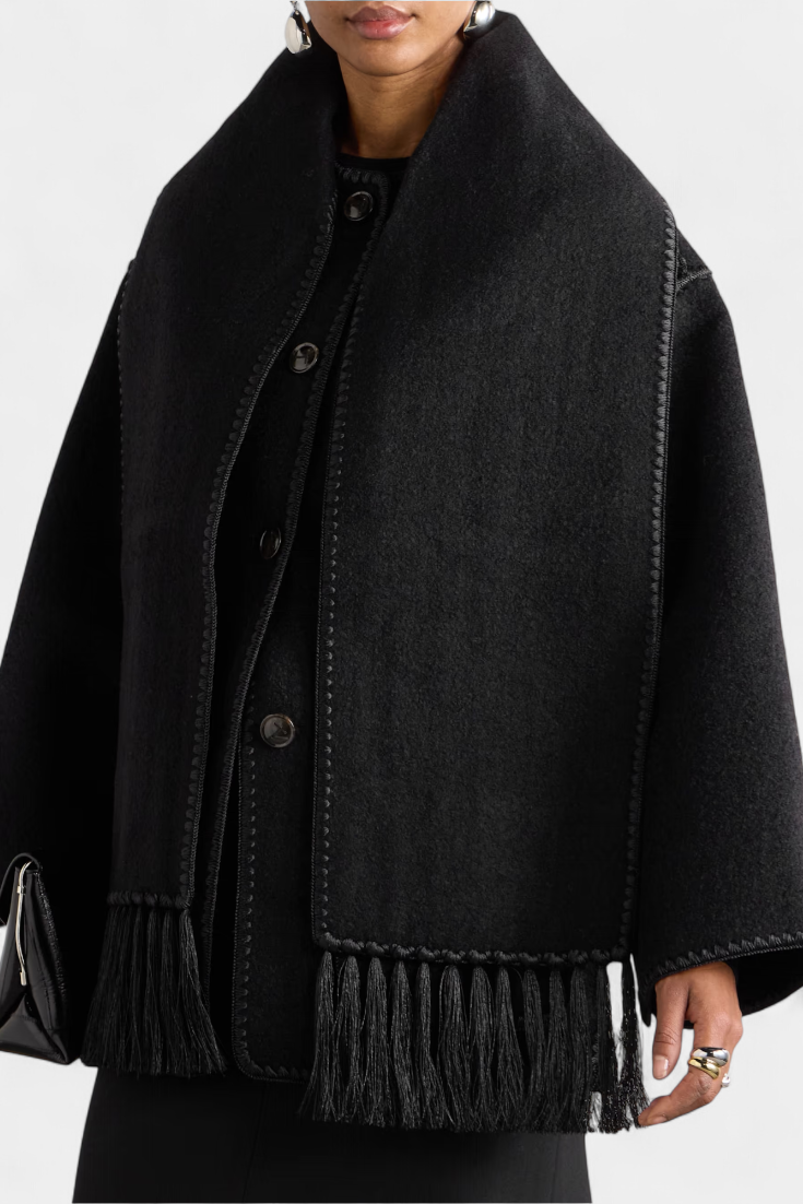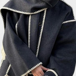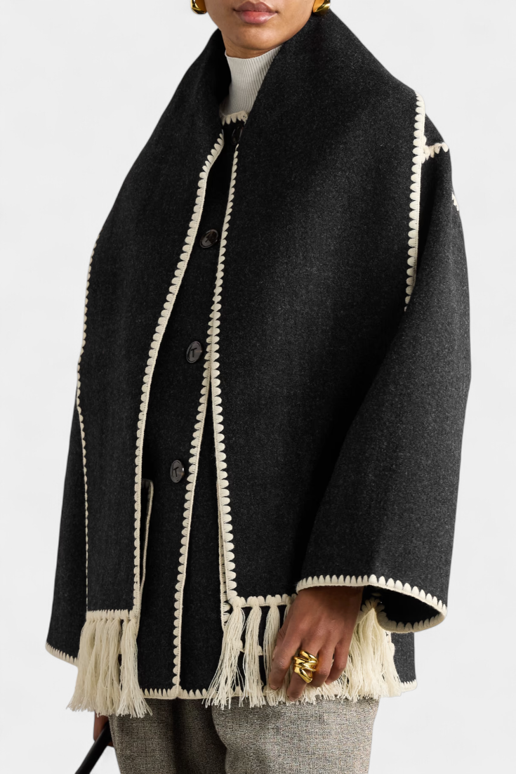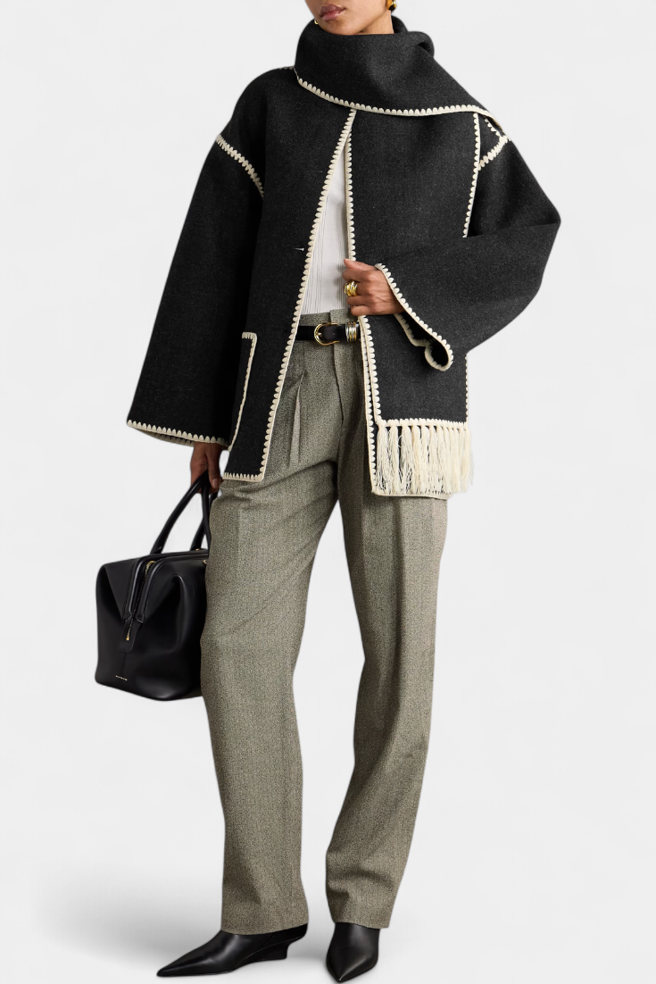 Pauline - Elegante abrigo de corte suelto con bufanda de flecos incorporada para un estilo sofisticado