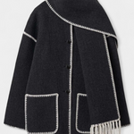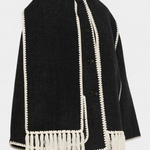 • Bufanda de flecos incorporada que aporta textura y funcionalidad
