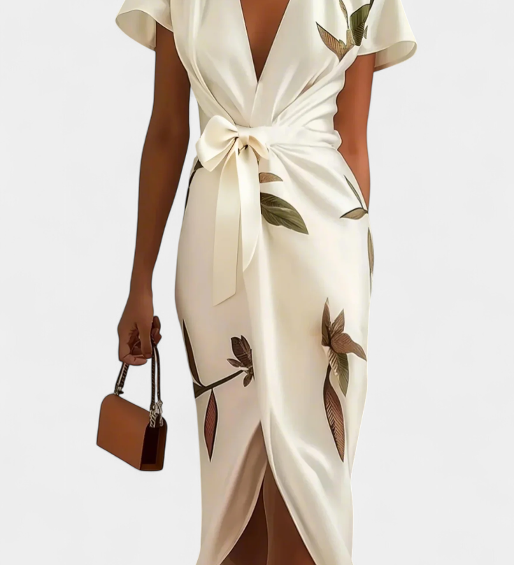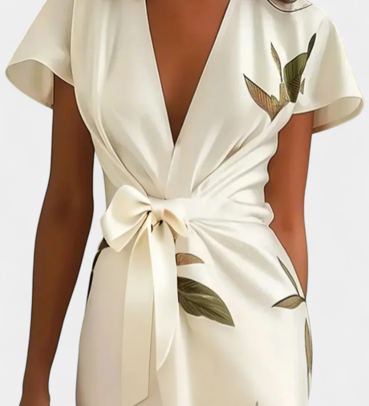 Dhalia Vestido de Fiesta con Estampado de Hojas para un Look Natural y Elegante