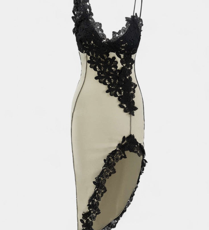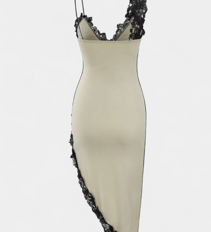 Diana Vestido Midi de Encaje Asimétrico con Paneles Elegantes