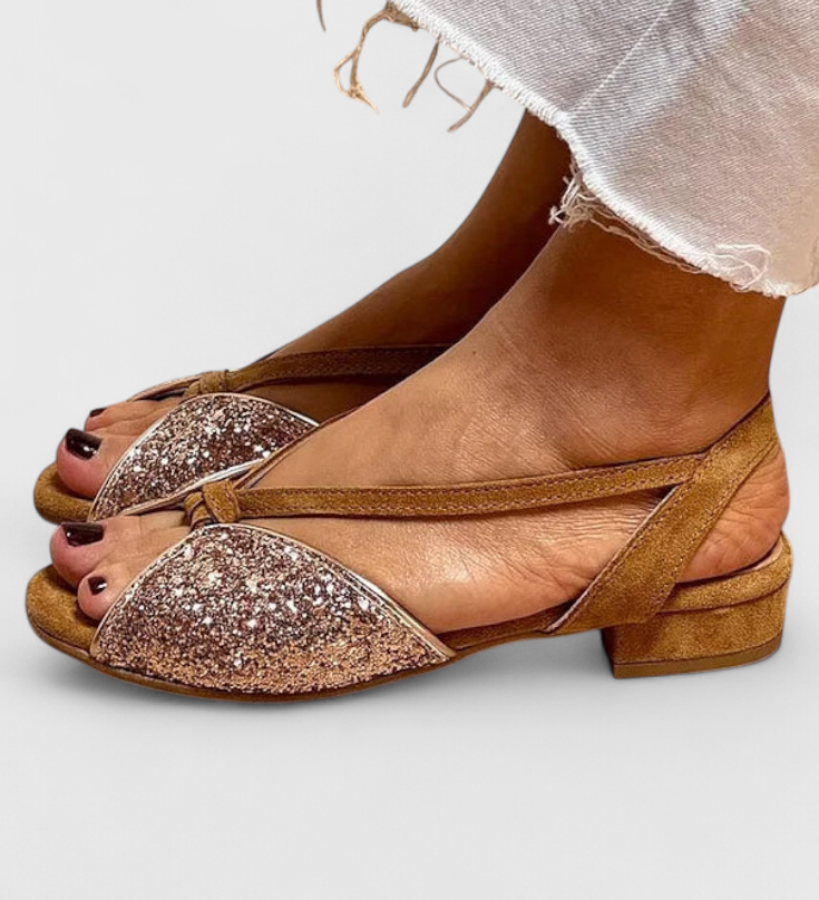 Dobrava Sandalias Sofia con Peep-Toe, Detalles Brillantes y Tacón Bajo en Bloque para un Estilo Elegante y Cómodo