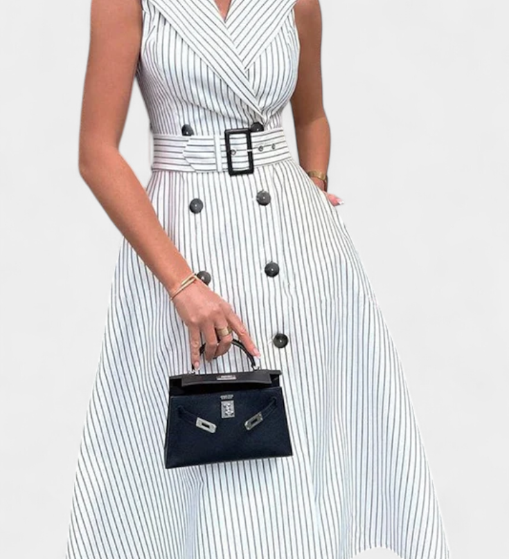 Diana Vestido Camisero Midi a Rayas con Cintura Anudada - Elegancia Casual y Sofisticada