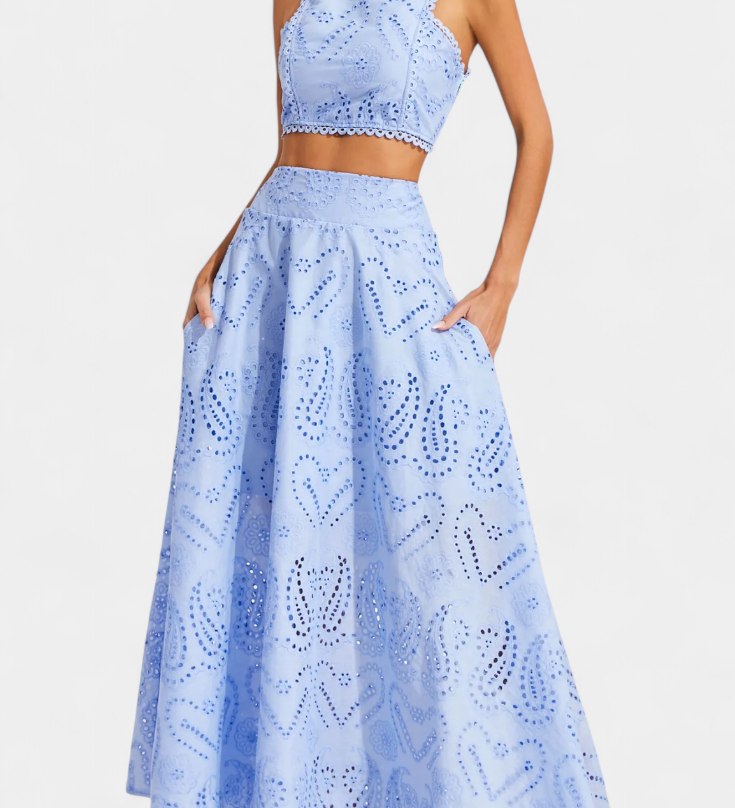 Danitza Elegante Conjunto Romántico de Encaje Floral Calado para un Look Sofisticado