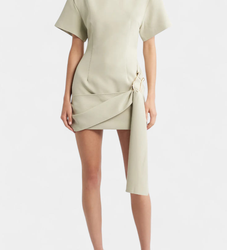 Coraline Vestido Mini Elegante con Cintura Drapeada y Detalle de Hebilla Dorada