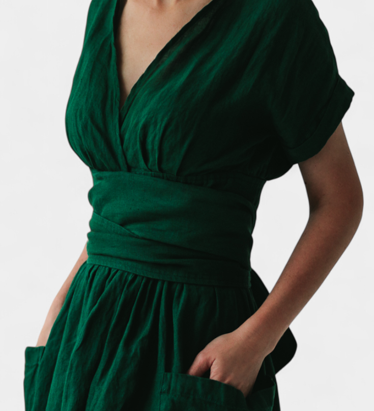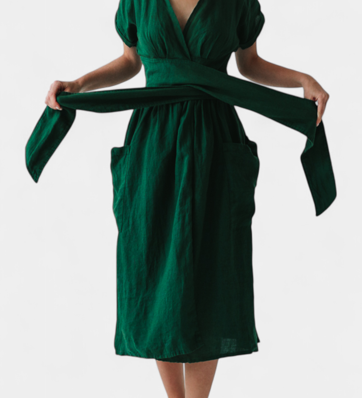 Cressida Elegante Vestido de Algodón con Escote en V y Cintura Ajustable para un Ajuste Perfecto