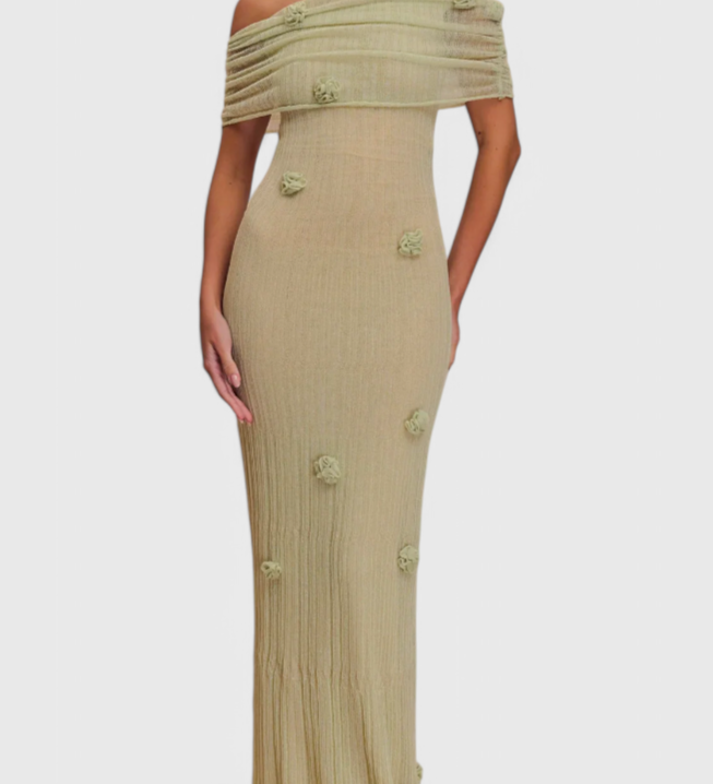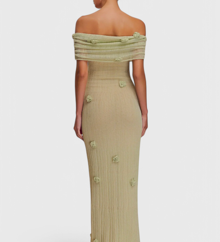 Barbara Vestido Maxi de Punto Off-Shoulder Elegante y Confortable