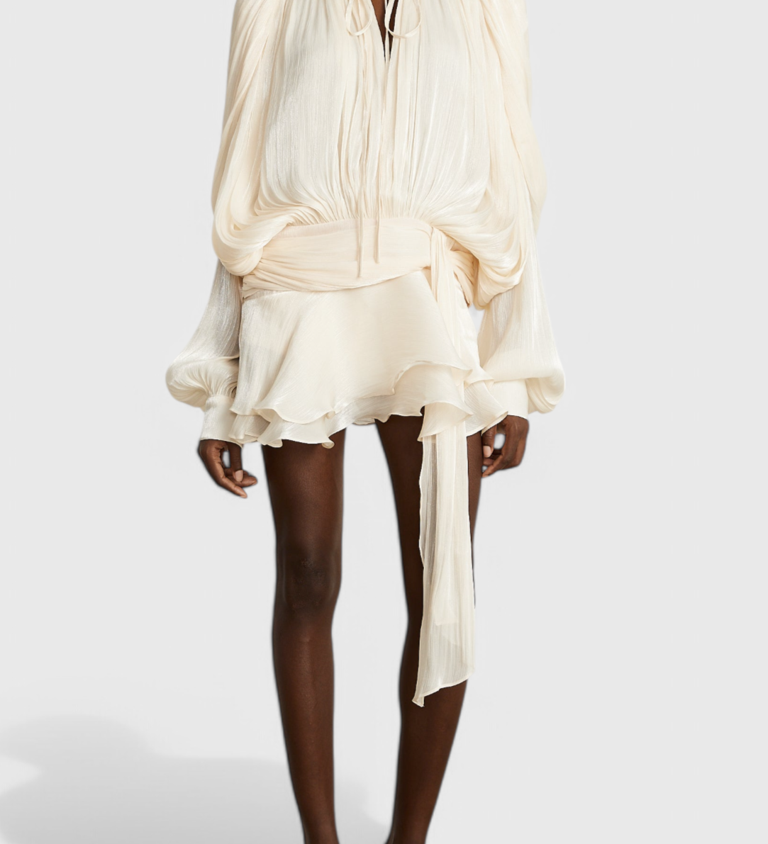 Aurore Vestido Mini de Encanto con Volantes Elegantes y Pliegues Complejos