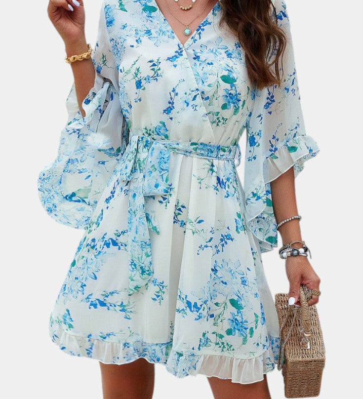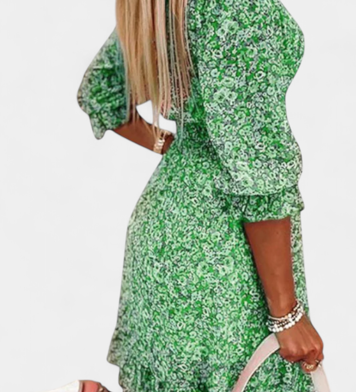 Benicia - Vestido Floral de Manga Abullonada y Dobladillo Juguetón para un look encantador