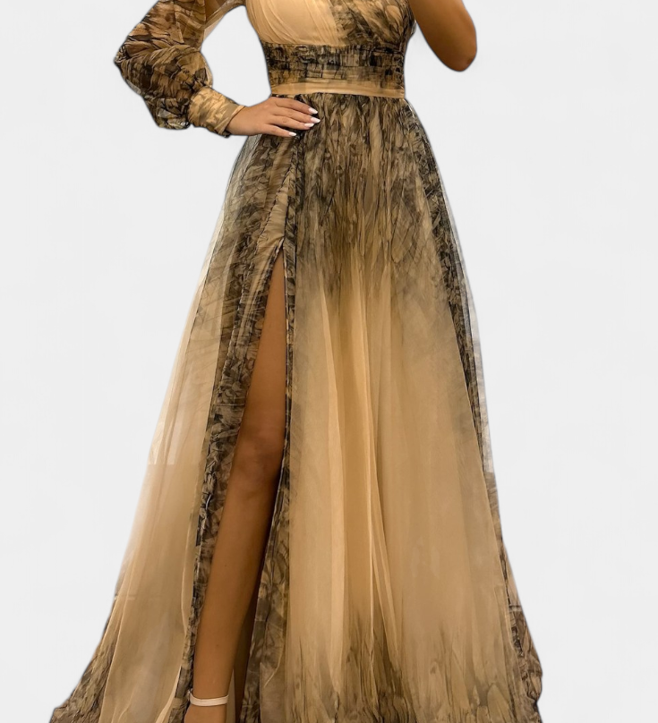 Becca Vestido Maxi de Chiffón con Diseño de Hombro Descubierto y Florerscentemente Voluminosa