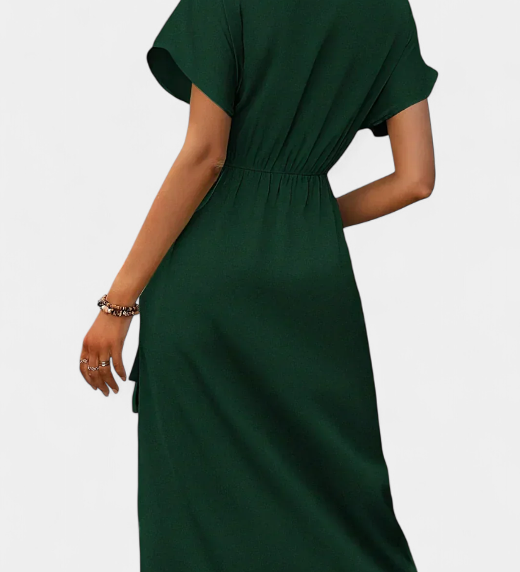 Begoña Vestido Cruzado Elegante con Cinturón y Detalle de Abertura Sutil