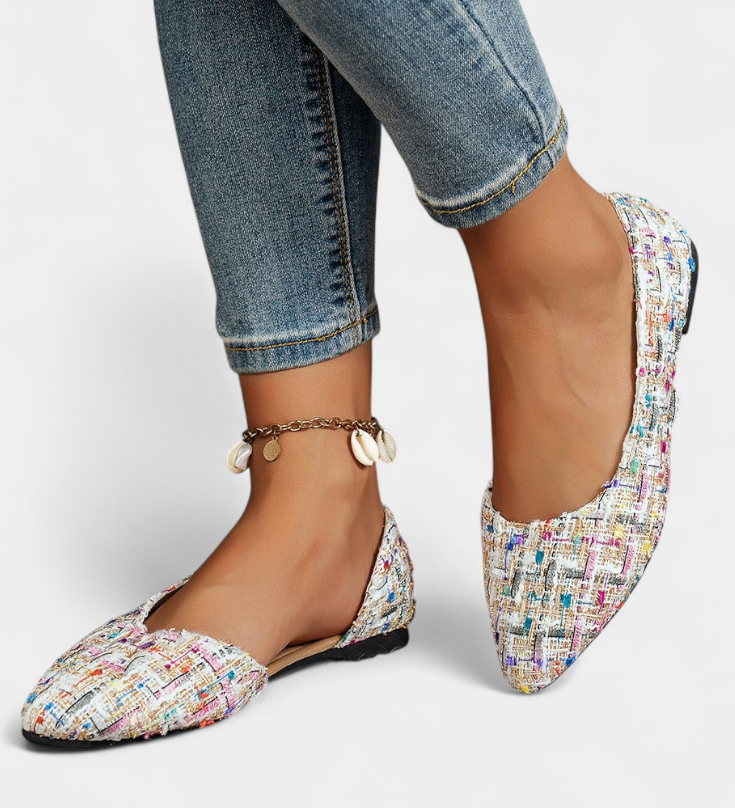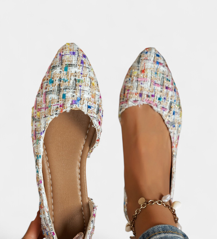 Zapatillas Tejidas Multicolores con Punta Afilada y Detalles de Cristal