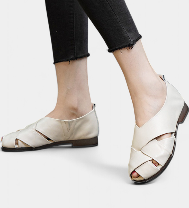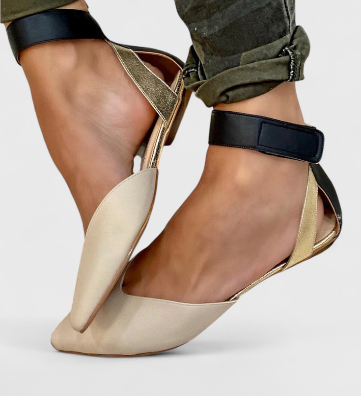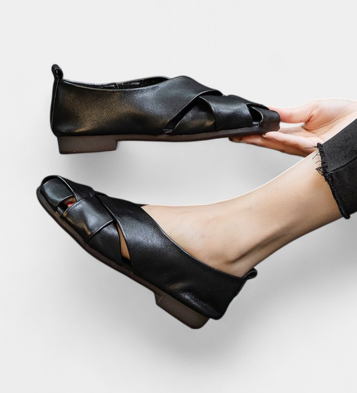 Zapatos Planos de Cuero Negros con Diseño Cruzado Abierto Nayra