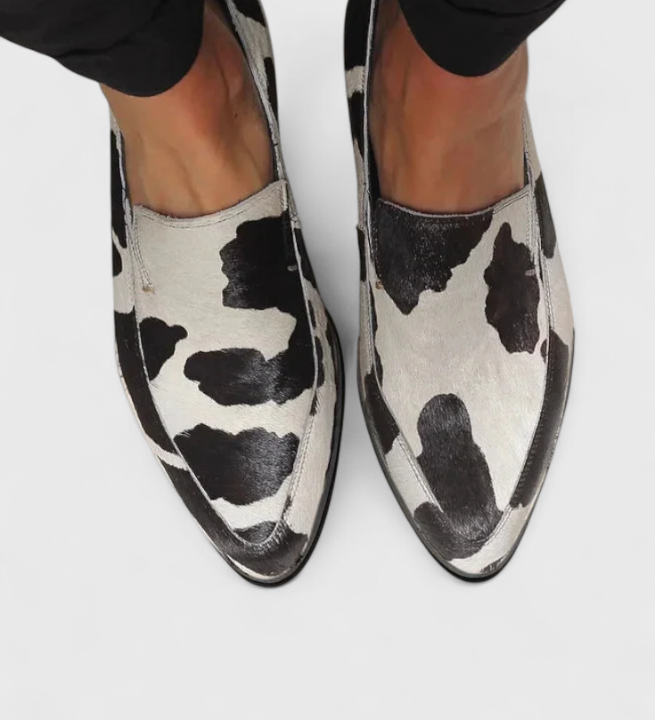 Zapatos Macarena Loafers Elegantes con Tacón Bajo y Estampado Animal para un Estilo Sofisticado