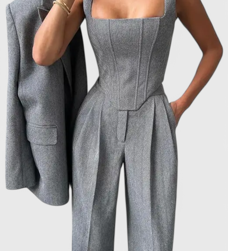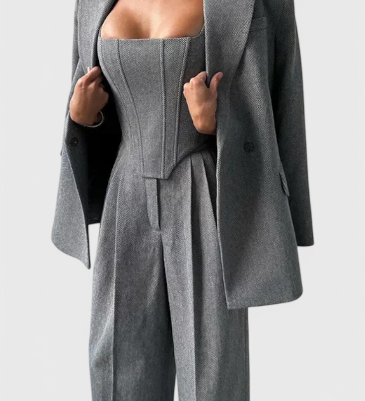 Conjunto de 3 Piezas Evena con Corsé Estructurado para un Look Elegante y Chic