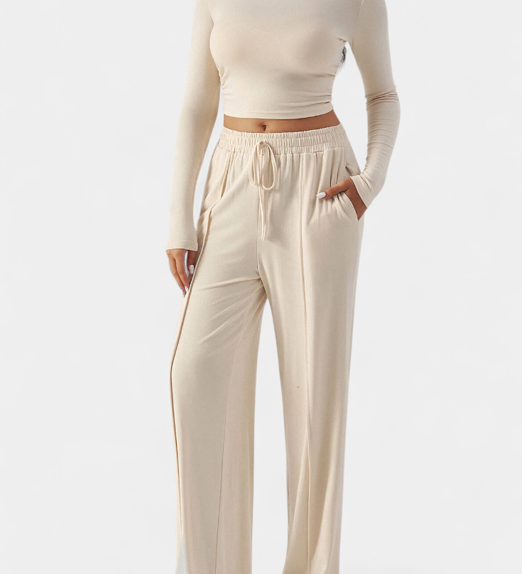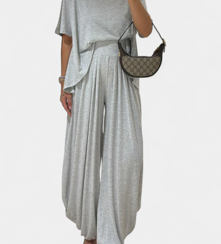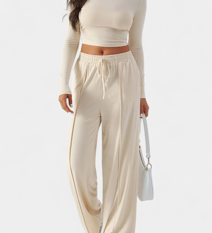 Conjunto Casual Trista con Top Suave y Pantalones Anchos para Máxima Comodidad