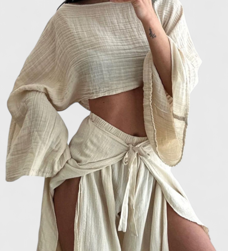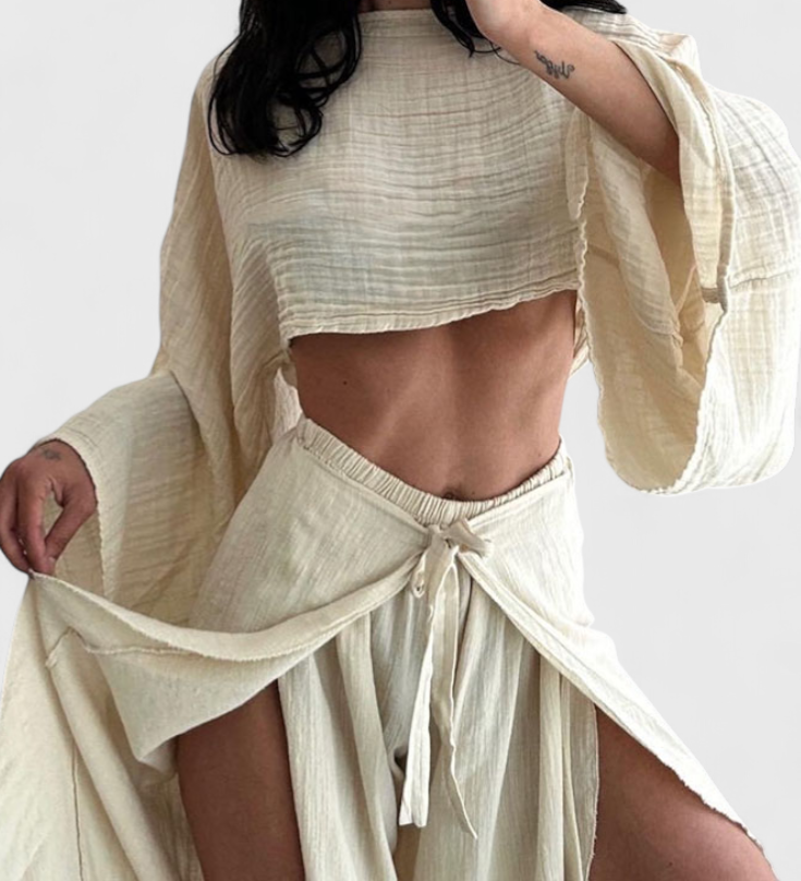 Conjunto Boho Lavinia de Top y Shorts en Lino y Algodón para un Estilo Relax y Sofisticado