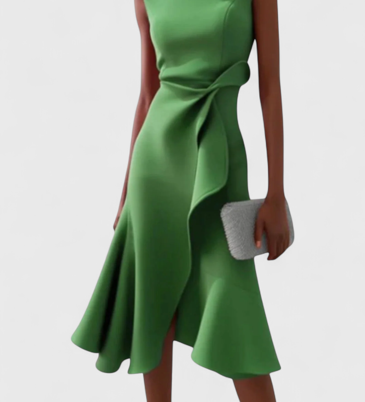 Claudia Vestido Midi Asimétrico con Drapeado - Elegancia y Estilo Cómodos