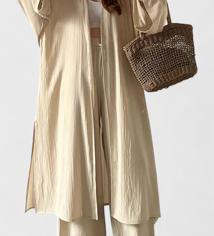 Conjunto Casual de Dos Piezas con Cárdigan Largo y Estilo con Abertura Lateral Para un Look Sofisticado y Cómodo