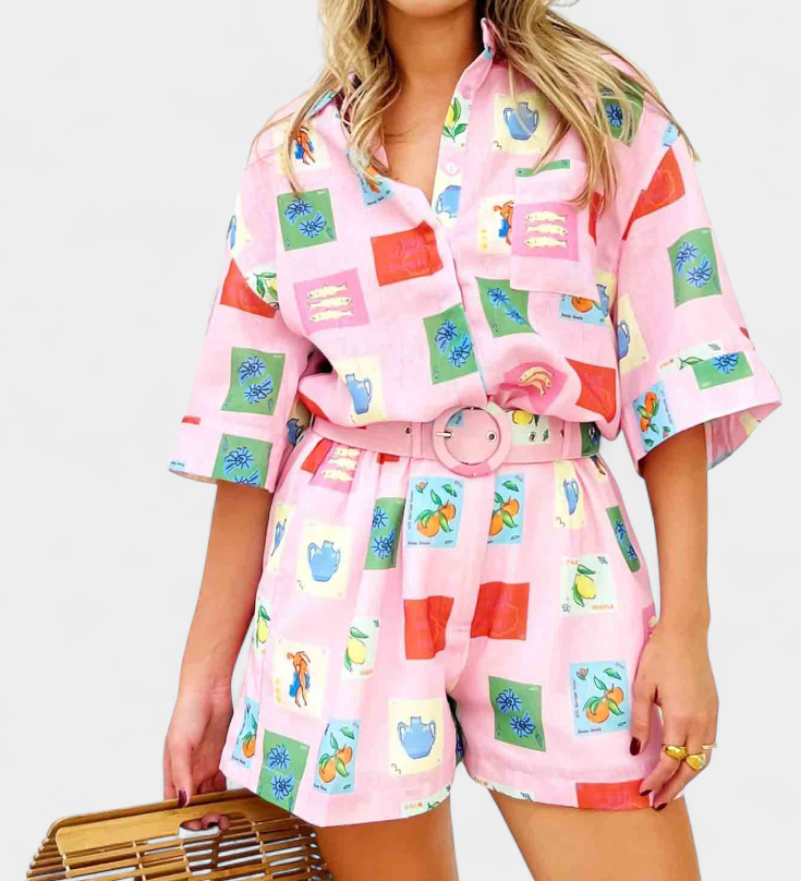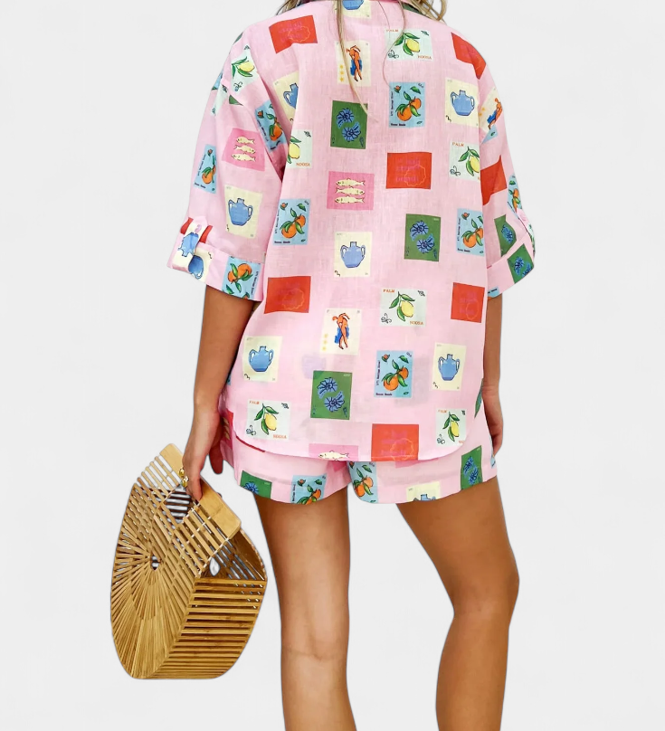 Conjunto de Camisa y Shorts Rosa con Estampado Mariluz para un Estilo Chic y Casual