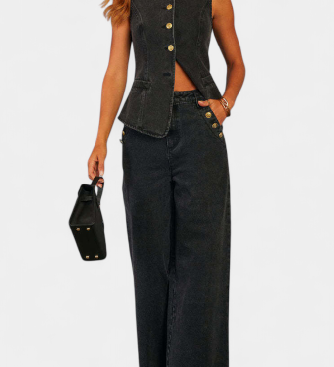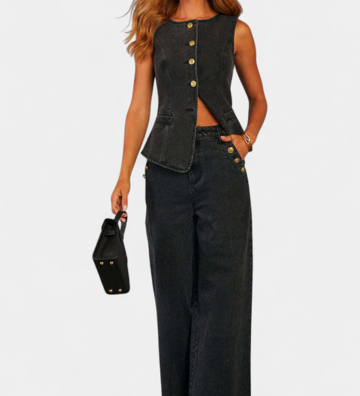 Conjunto de Denim Ludovica con Chaleco Ajustado y Pantalones de Pierna Ancha para un Estilo Moderno y Confortable