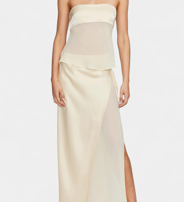 Conjunto de Falda Midi Sin Tirantes en Mantequilla - Estilo Elegante y Sofisticado