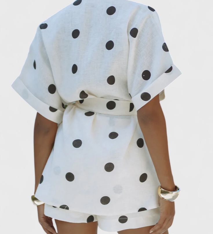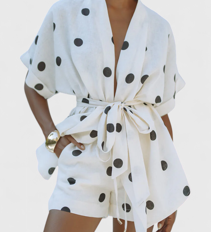 Conjunto de Kimono con Nudo y Shorts a Lunares para un Estilo Chic y Confortable