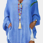 La Camisa Oversized Melis es la adición perfecta a tu guardarropa de verano. Hecha de algodón ligero, también puede usarse como vestido de playa y cubre traje de baño. Su corte holgado es cómodo y elegante, lo que la convierte en la elección ideal para un día en la playa. Mantente fresco y elegante con la Camisa Oversized Melis.