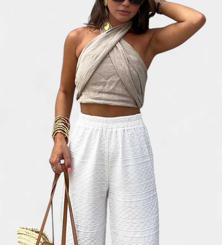 Lena Top Cruzado Sin Espalda con Nudo y Estilo Halter - ¡Elegancia y Frescura en tu Outfit!