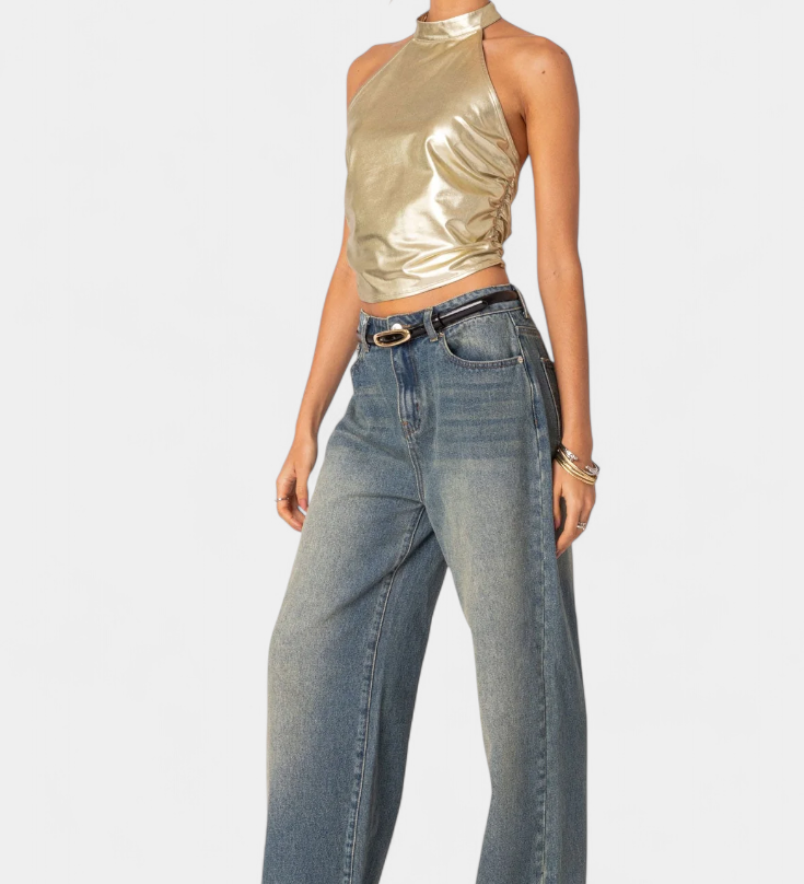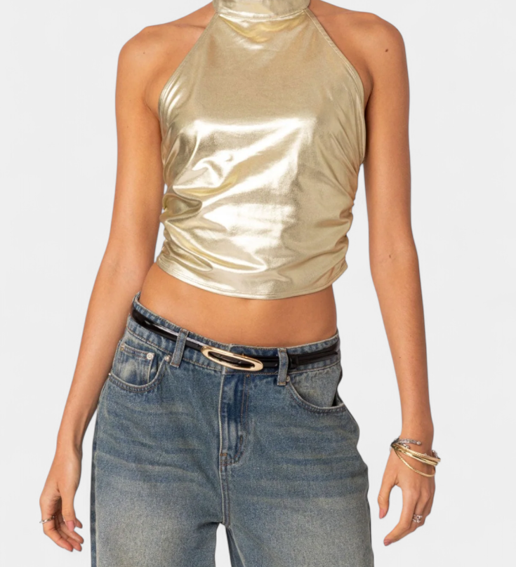 Anna Top Halter Metálico Karter - Camiseta Brillante y Elegante para un Estilo Moderno