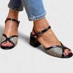 Ustinya Tacones Negros Elegantes con Detalles de Colores y Correa Ajustable al Tobillo