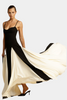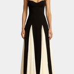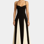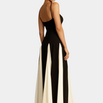 Elegante vestido maxi bicolor con tirantes finos para un estilo sofisticado