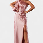 Póntelo y siente cómo la elegancia te envuelve, convirtiendo cada paso en una declaración de pura sofisticación. Con su escote asimétrico, drapeado esculpido y cintura anudada, Charlotte se mueve con fluidez para realzar tu figura y dejar huella en cada ocasión especial.