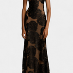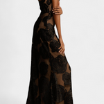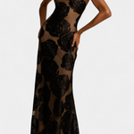 Adéntrate en el glamour refinado con Vlada—un elegante vestido que fusiona una feminidad audaz con detalles modernos. Con un estampado floral de terciopelo a gran escala y un escote asimétrico esculpido, Vlada ofrece un ajuste favorecedor, texturas exquisitas y un movimiento elegante. Ideal para hacer una entrada inolvidable en tu próximo evento especial.