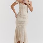El vestido Isla Bella encarna la elegancia atemporal con su delicada estructura de encaje y un ajuste que realza la figura. Perfecto para bodas, fiestas en el jardín o cualquier ocasión que requiera una sofisticación sutil.
