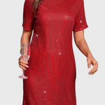 Brilla con facilidad en Loreen—un vestido mini llamativo que combina brillantes lentejuelas con una silueta relajada. Diseñado con mangas cortas y un corte cómodo y relajado, te permite brillar sin comprometer la comodidad. Ya sea que te dirijas a una fiesta, evento de verano o celebración nocturna, Loreen promete un estilo destacado en cada paso.
