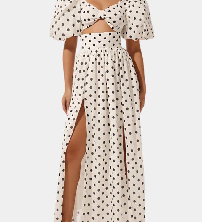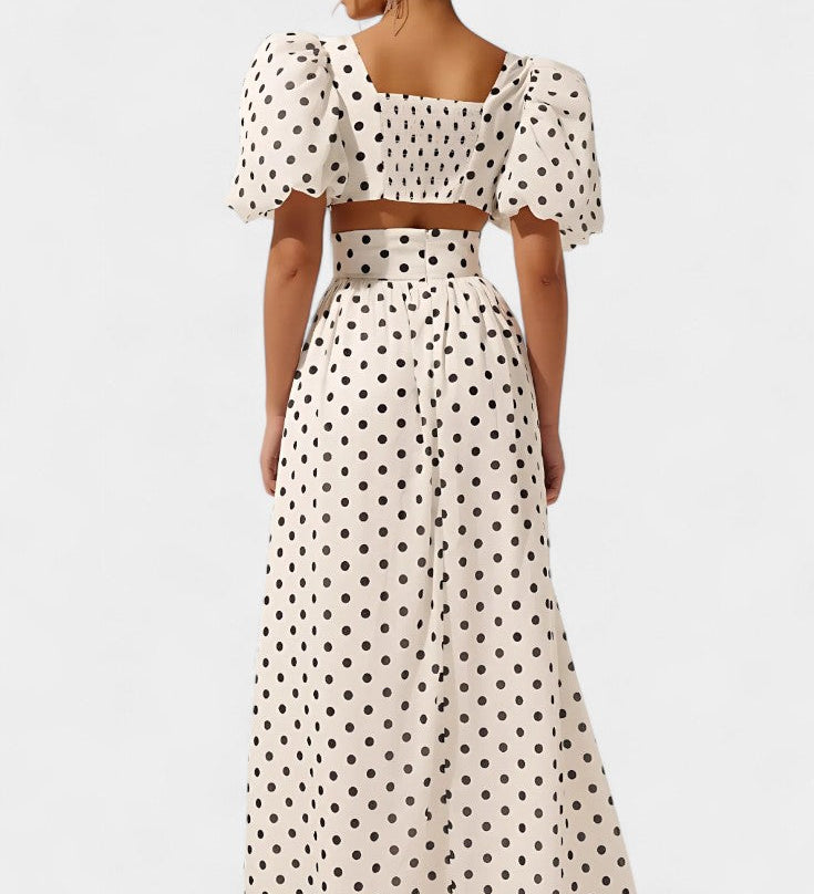 Sherine Conjunto Casual de Falda y Top de Lunares con Elegantes Mangas Abullonadas
