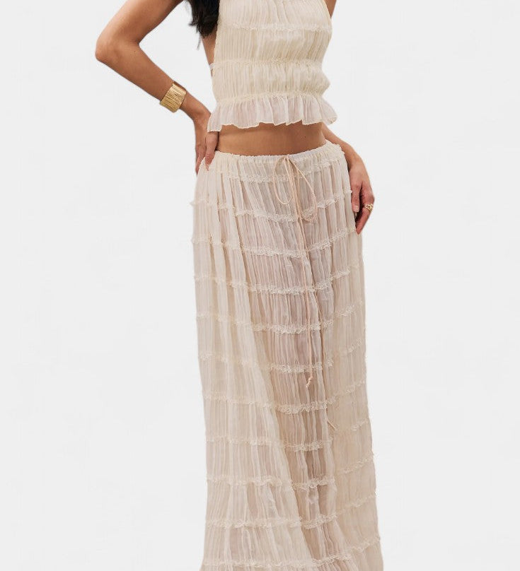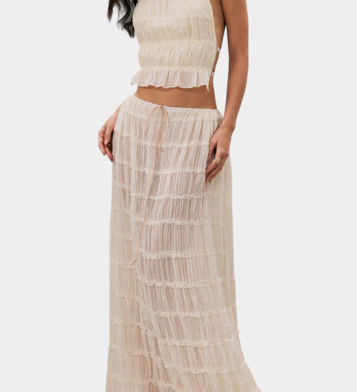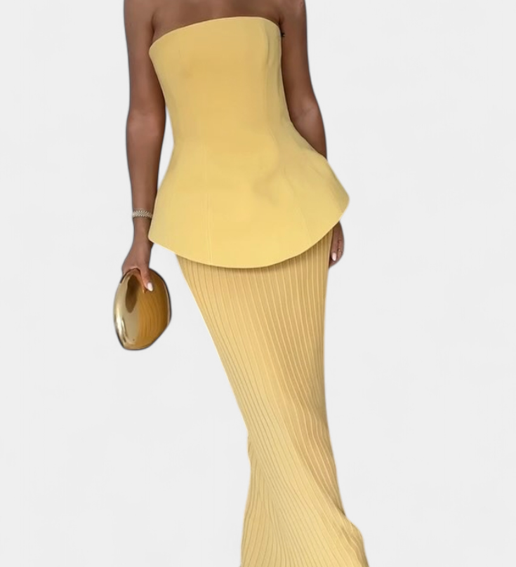 Conjunto de Dos Piezas Clarita con Diseño Plisado y Sin Tirantes para un Estilo Elegante