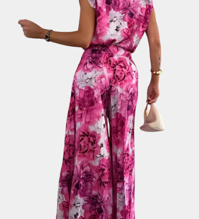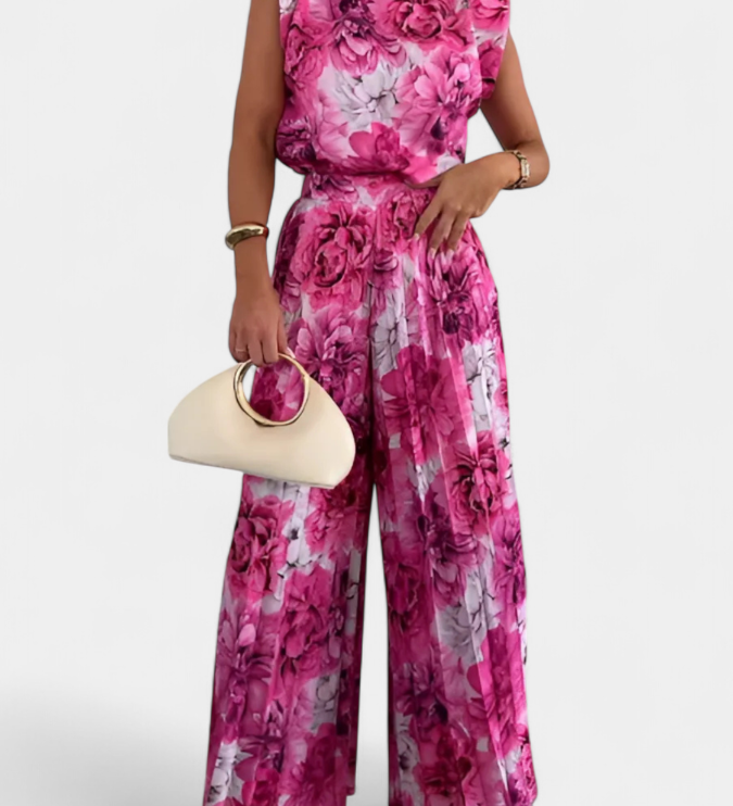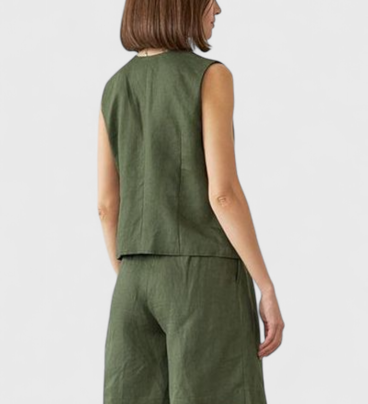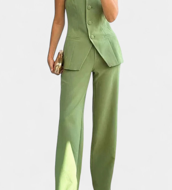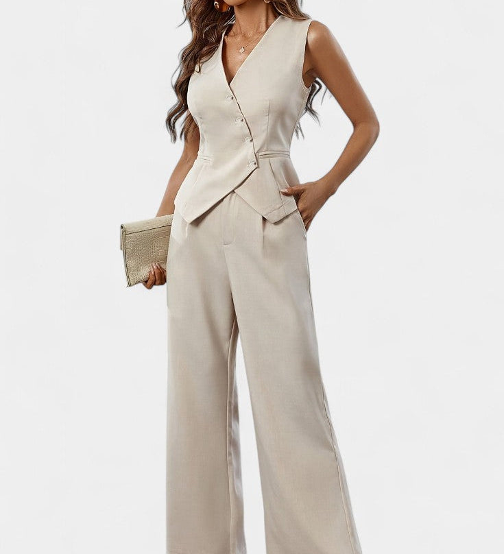 Elegante conjunto sin mangas con chaleco y pantalones anchos para un estilo moderno y cómodo
