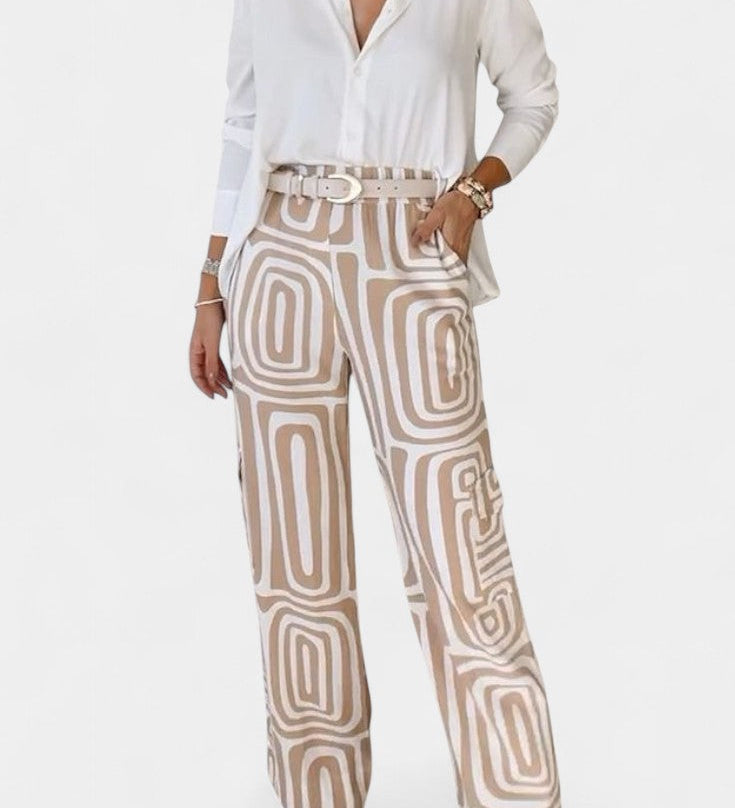 Lauren Elegante Conjunto de Dos Piezas con Pierna Ancha para un Estilo Sofisticado