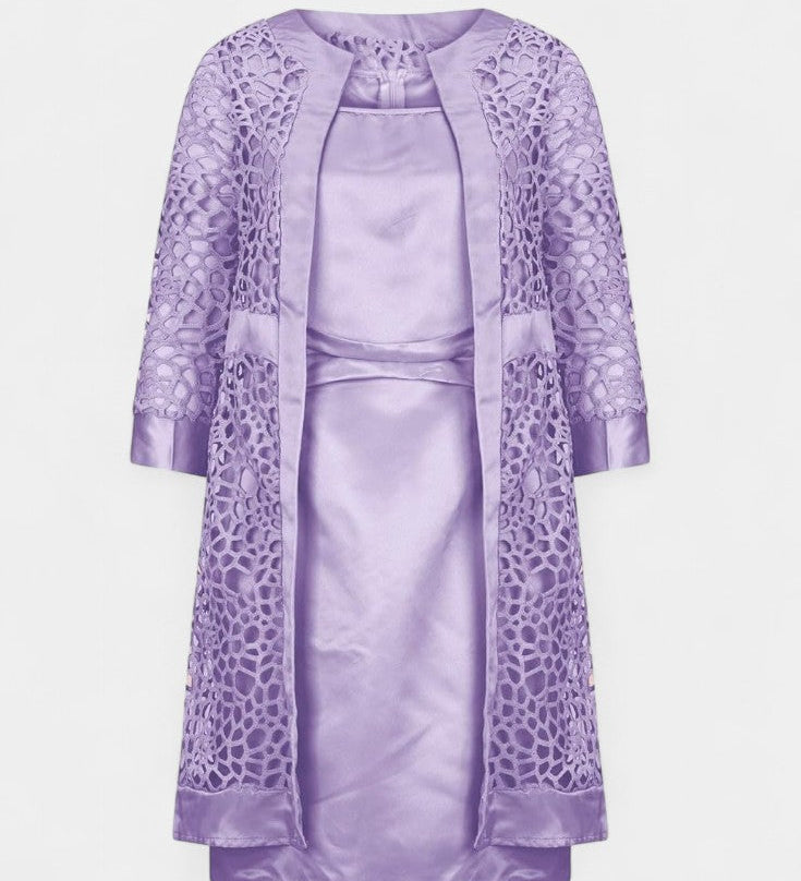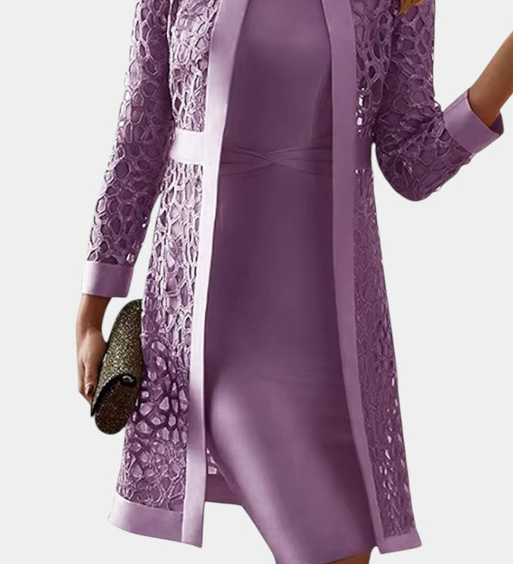 Elegante Conjunto de Vestido de Dos Piezas con Encaje Diseño Moderno y Sofisticado