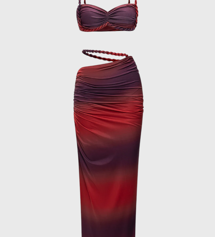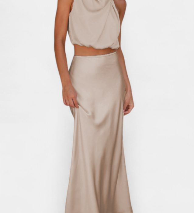 Hanna Elegante Conjunto con Falda Drapeada y Diseño Sin Espalda