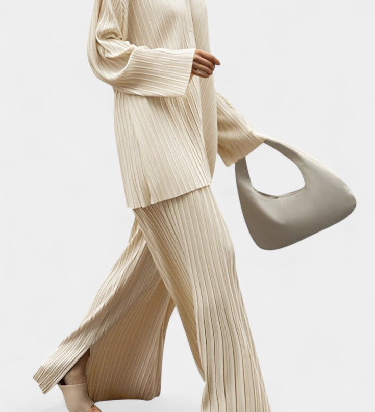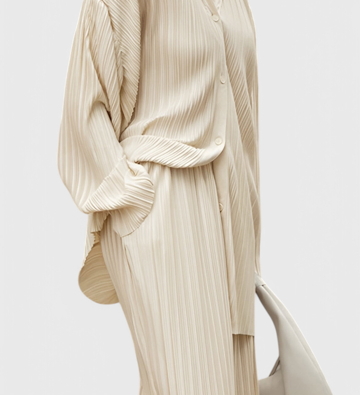 Liora Elegante Conjunto de Dos Piezas con Top Estructurado y Pantalón Plisado para un look sofisticado
