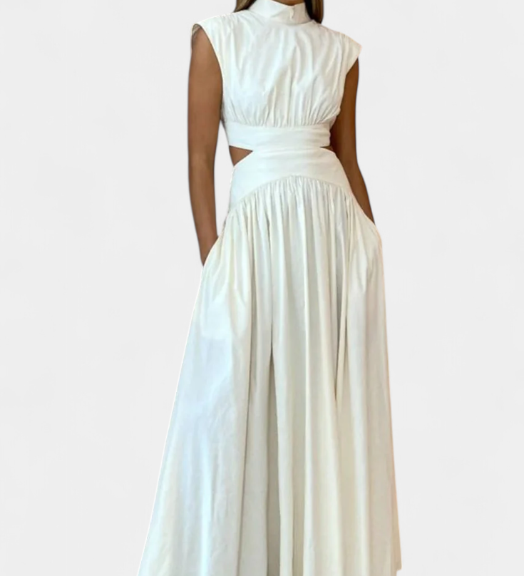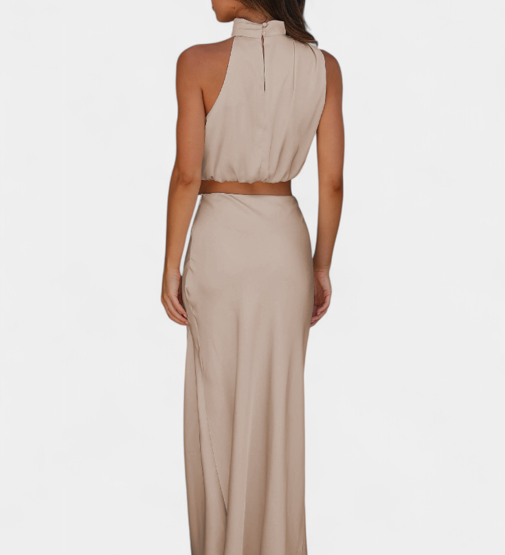 Elegante Conjunto Largo Jocelyn con Escote Alto y Detalle de Abertura Lateral para un look Minimalista y Sofisticado