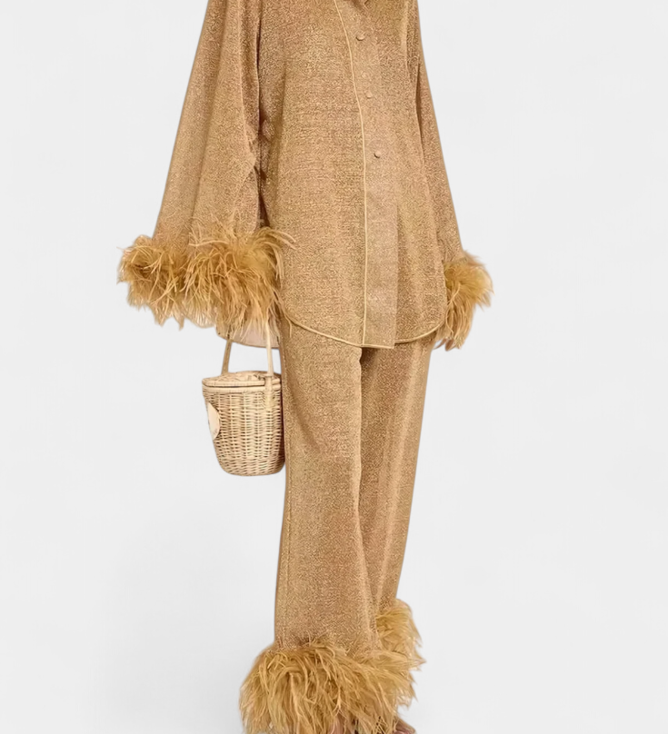 Elegante Conjunto de Dos Piezas Polina con Collar de Plumas para un Estilo Sofisticado