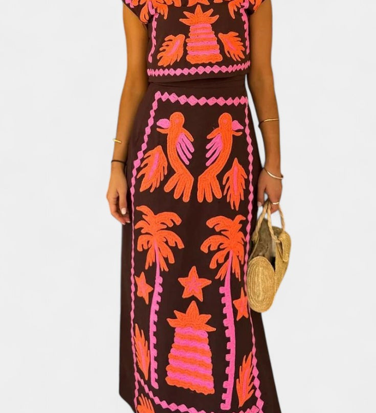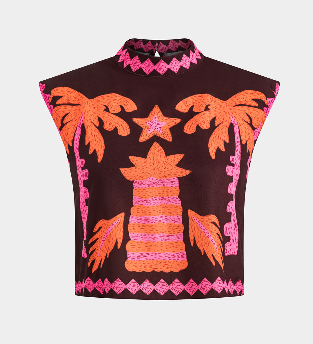 Conjunto de Top y Falda Recortada Sloan con Diseño de Palma de Coco para un Estilo Tropical y Refrescante