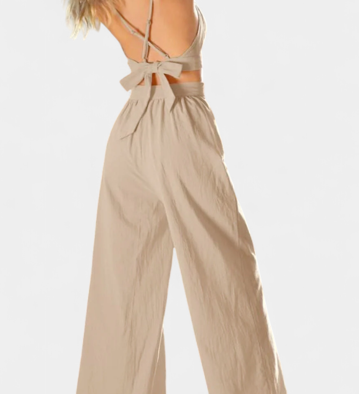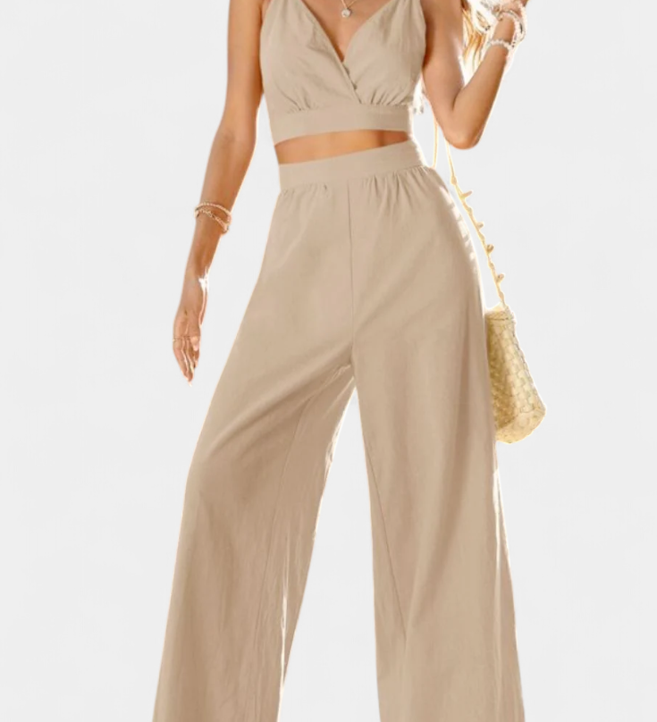 Elegante conjunto de lino de dos piezas Pascuala con blusa sin mangas y pantalón fluido para un estilo cómodo y sofisticado