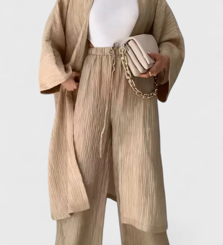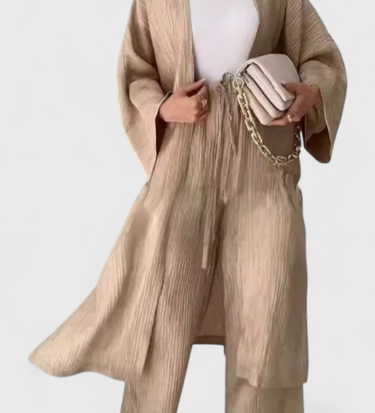 Caspian Conjunto de Dos Piezas con Kimono Largo para un Estilo Cómodo y Elegante