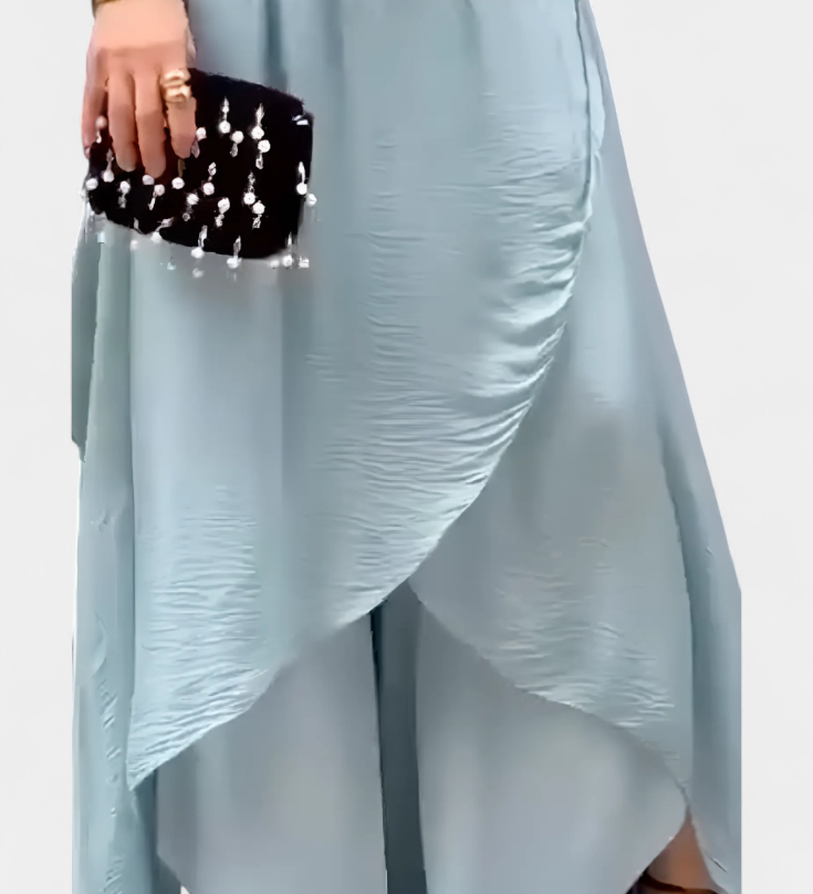 Conjunto Elegante Hayden con Top Asimétrico y Pantalón Palazzo para un look sofisticado