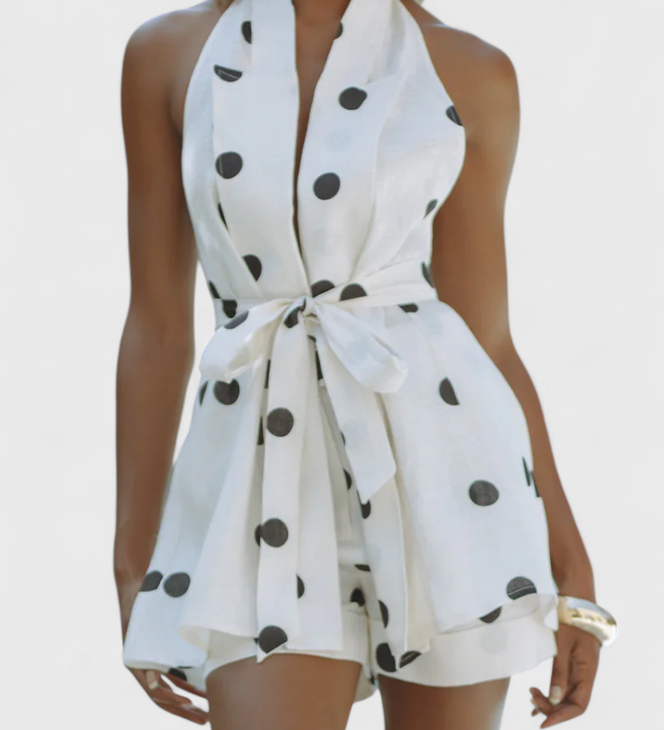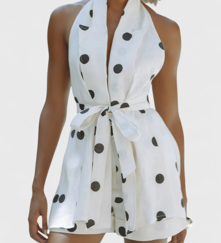 Eshra Conjunto de Top Halter y Shorts con Estampado de Lunares para un Estilo Chic y Cómodo
