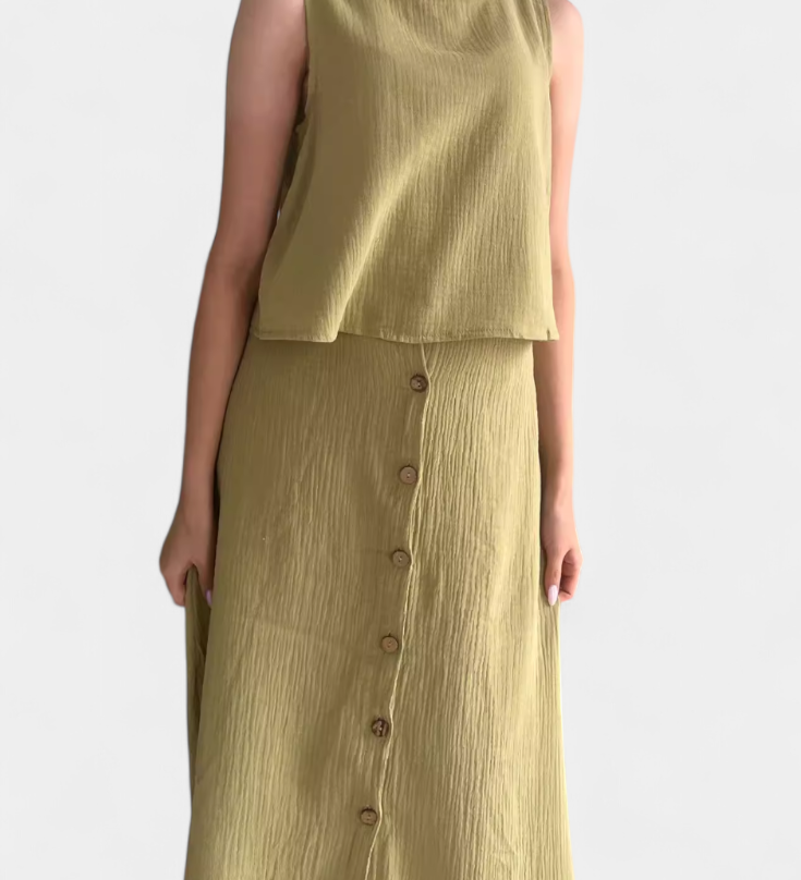 Naha Conjunto de Algodón con Elegante Chaleco y Botones Frontales para un Estilo Sofisticado